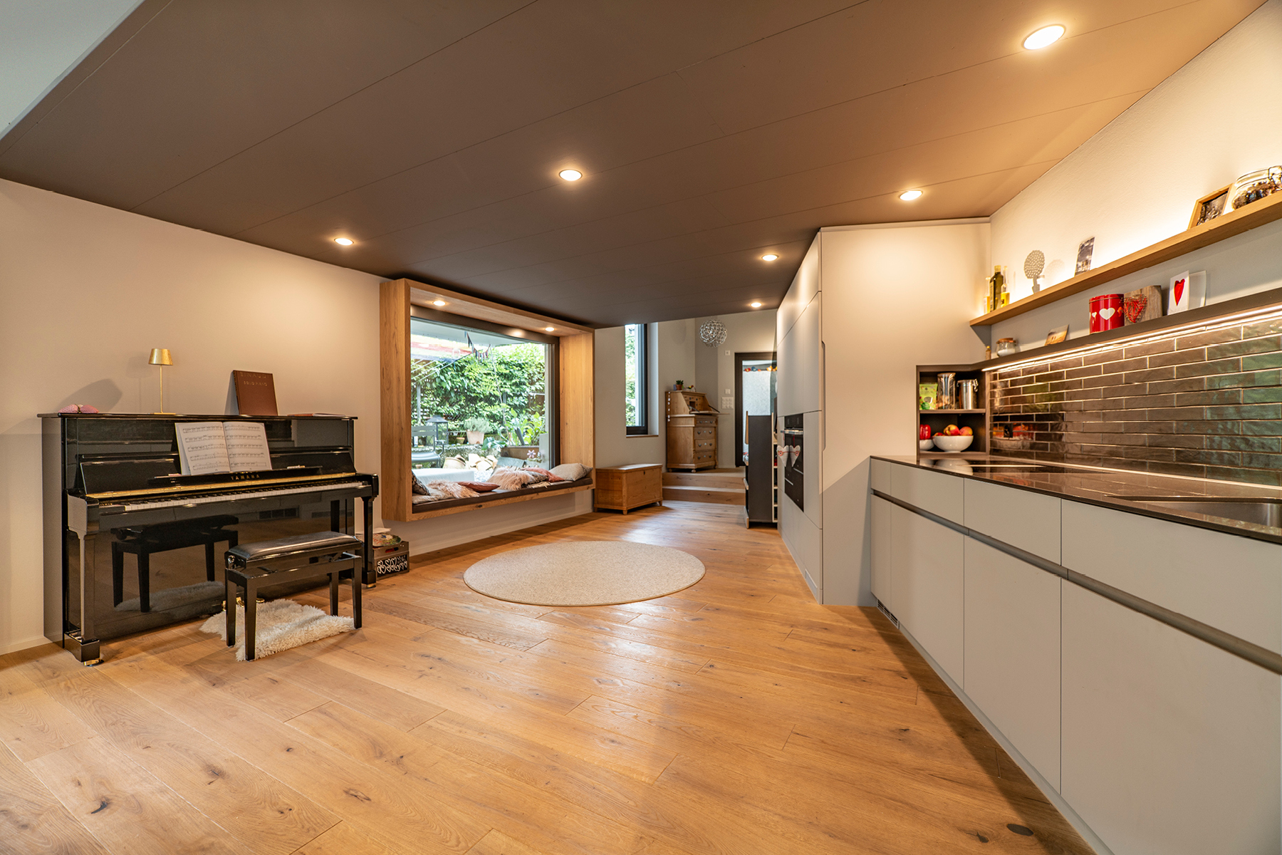 Alt- und Neubau werden vereint. Aus dem ursprünglichem Gewerberaum mit Lager wurde ein Bijou mit spannenden Details.