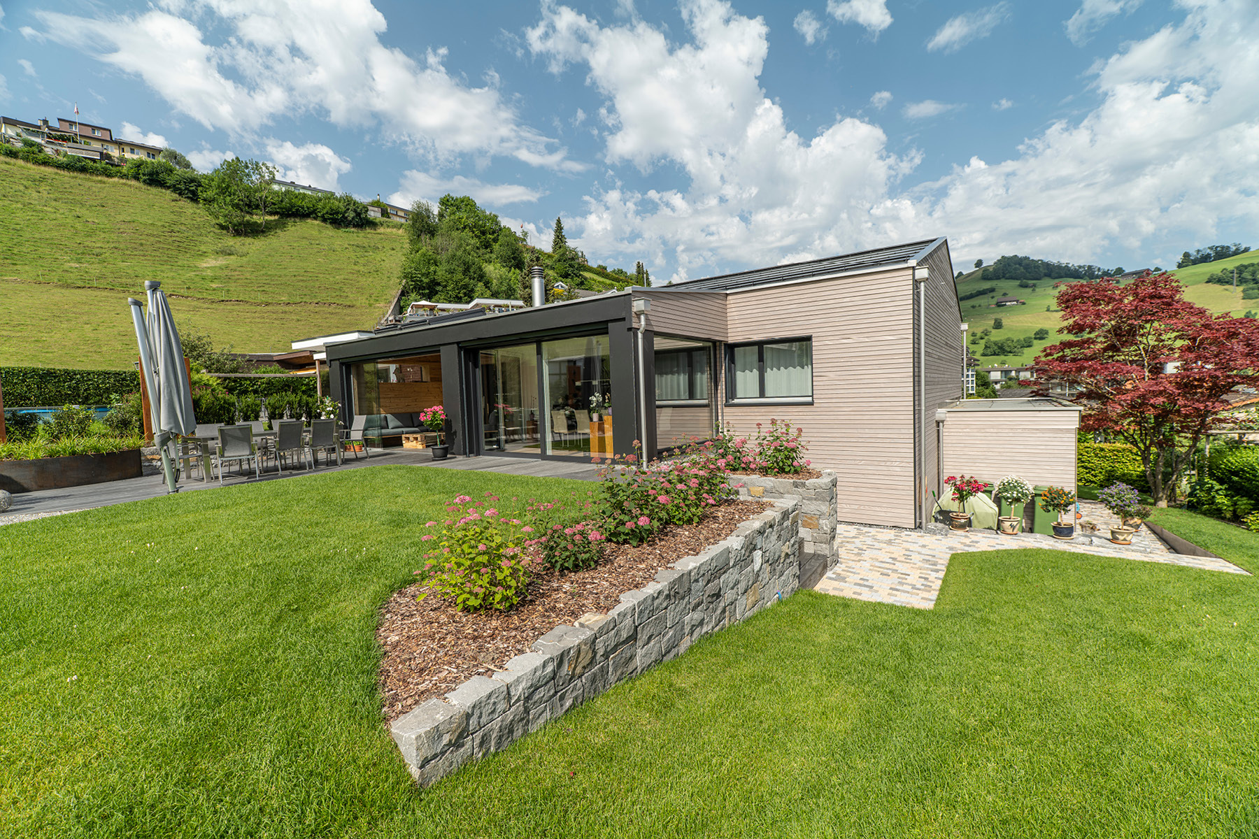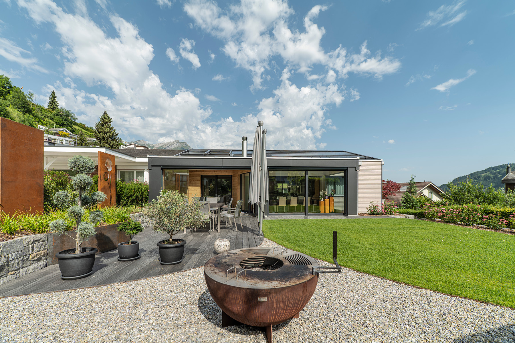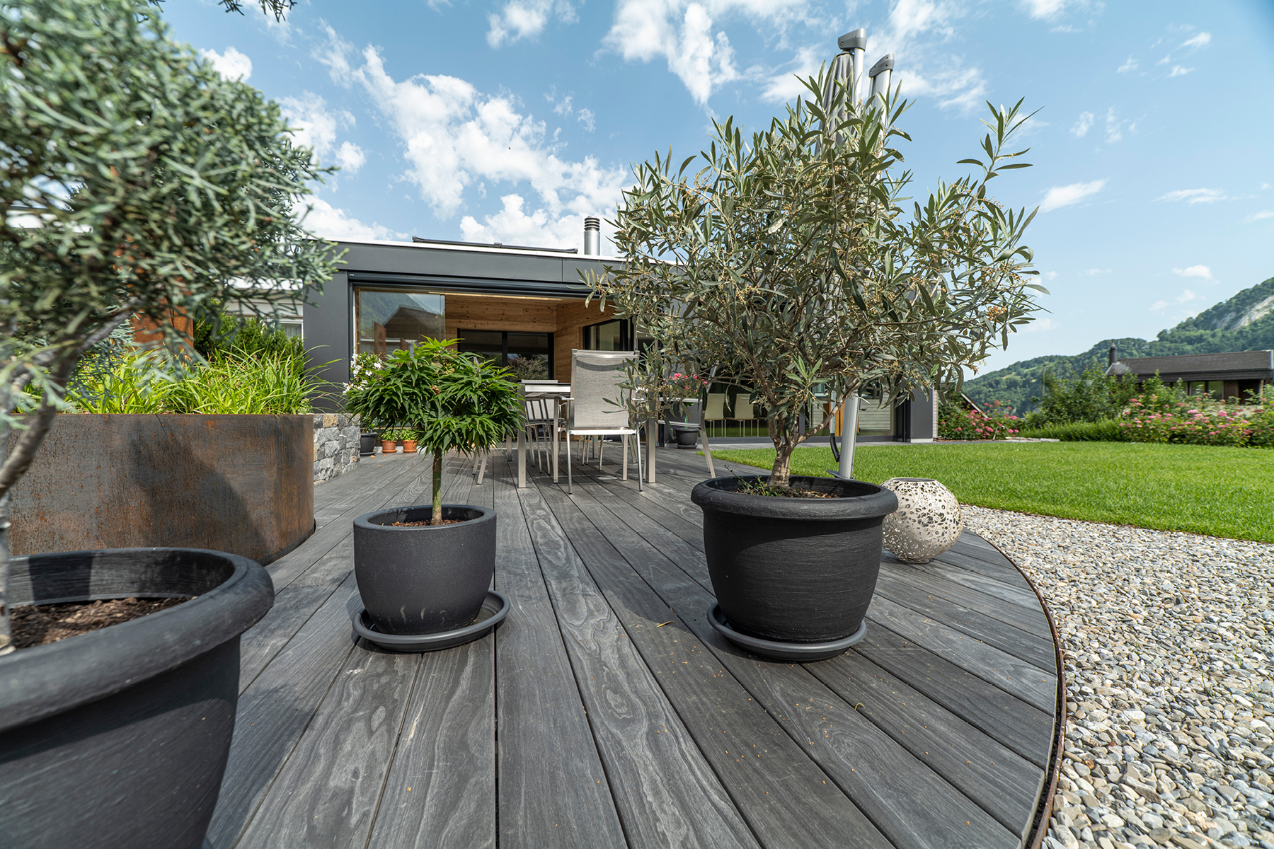 Auch im Garten durfte das Holz wirken.
