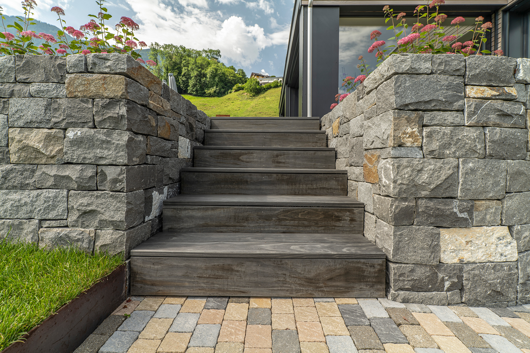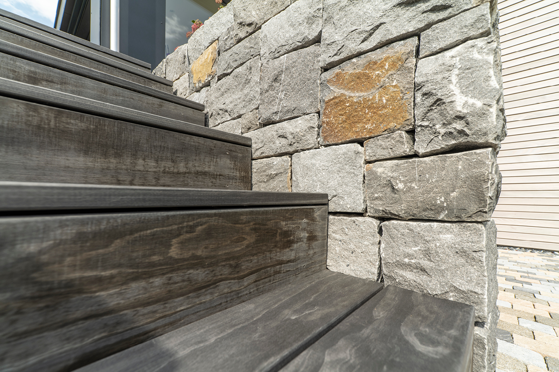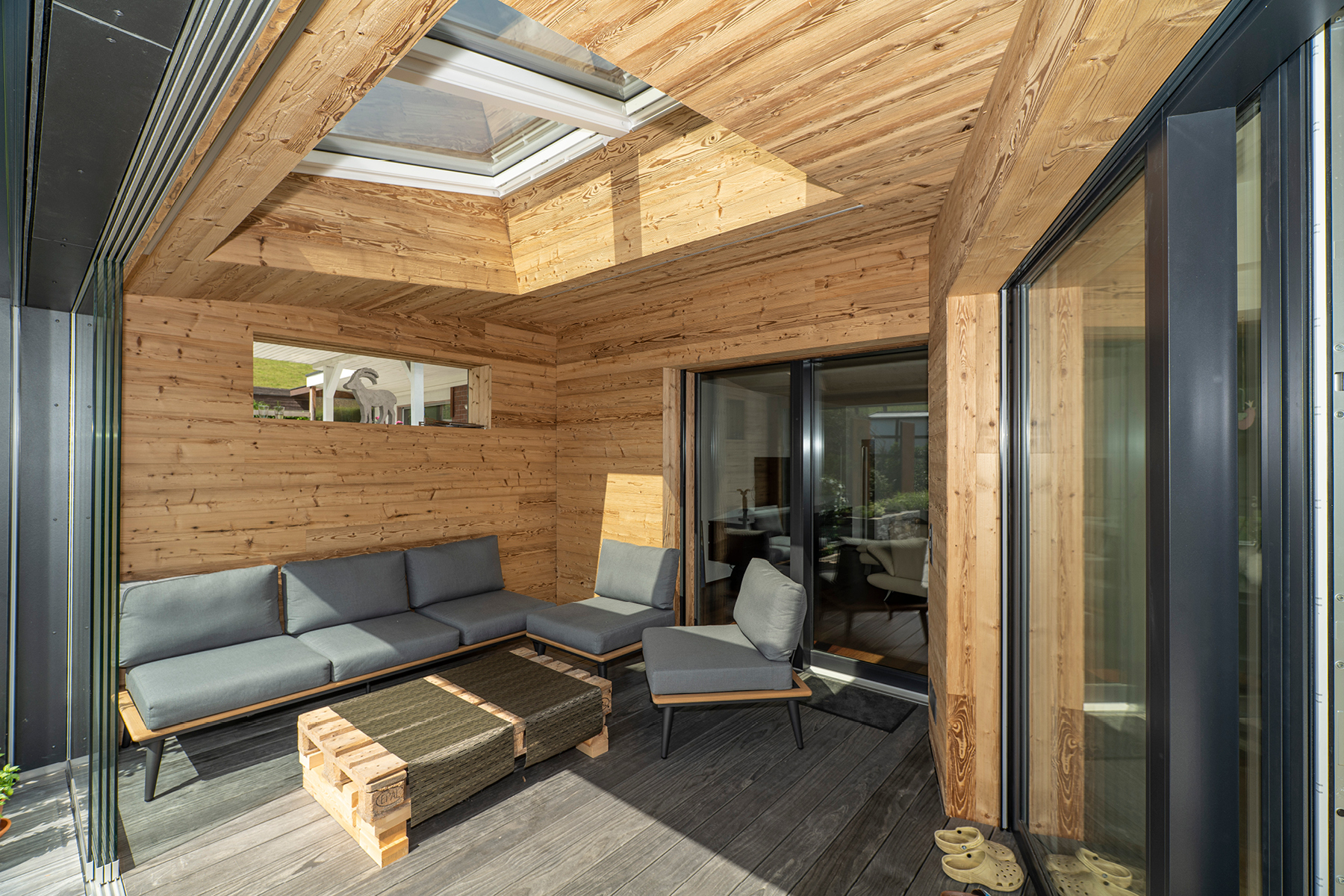 Auch im Garten durfte das Holz wirken.