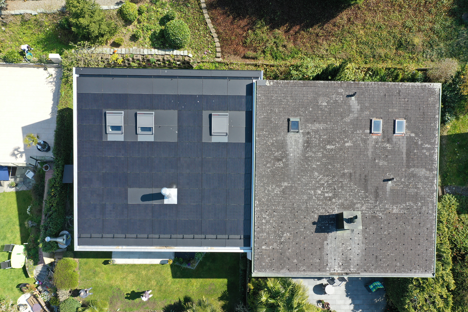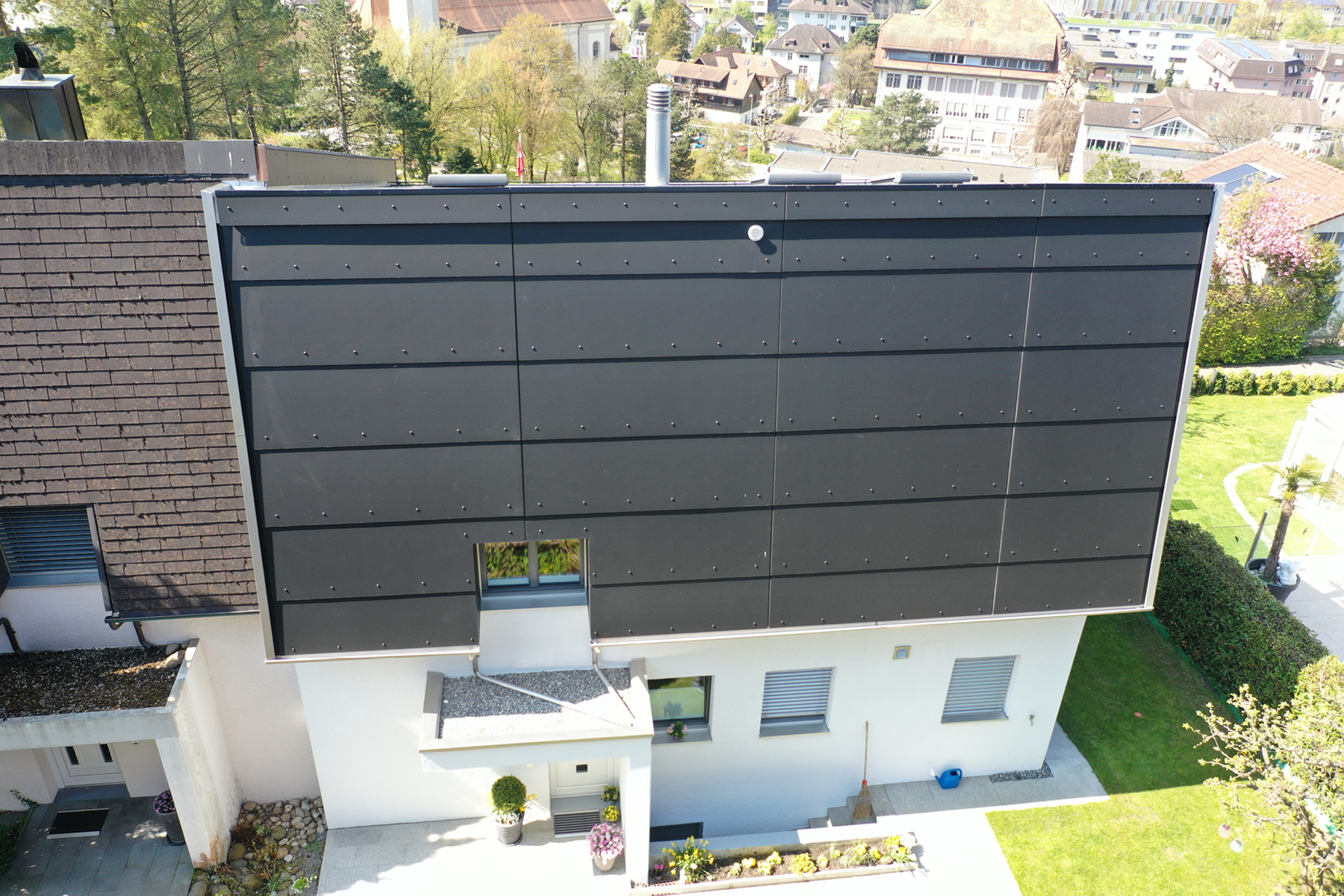 Mit der Dachsanierung konnten wir die Wärmedämmung erheblich verbessern. Die zusätzliche Indach-Photovoltaikanlage deckt den Eigenbedarf an Strom vollumfänglich ab und gibt dem Haus einen neuen Look.